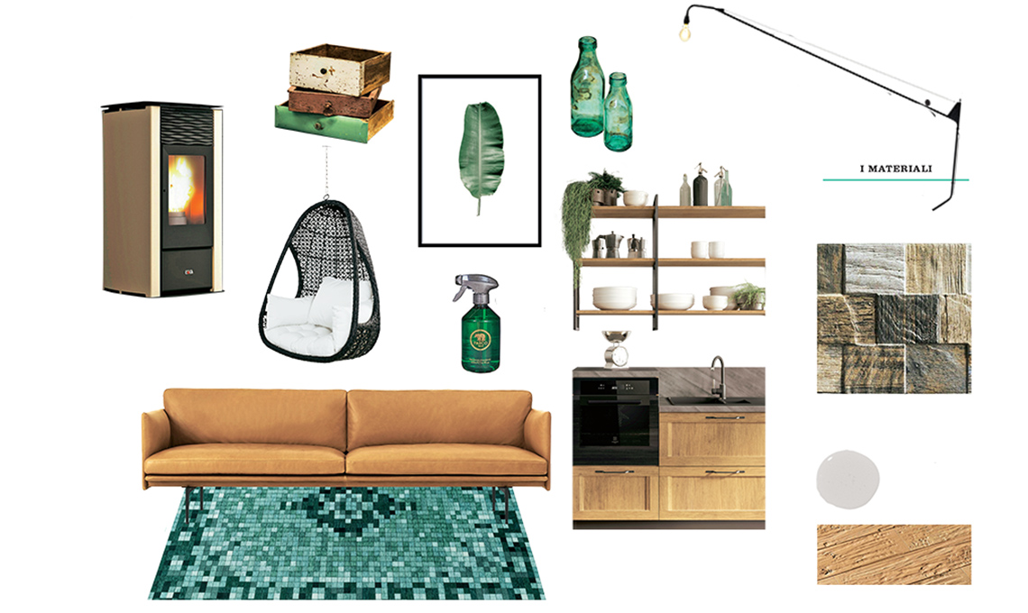 Sax è la cucina modulare con ante a cornice e scaffali pensili in metallo e legno [Scavolini].