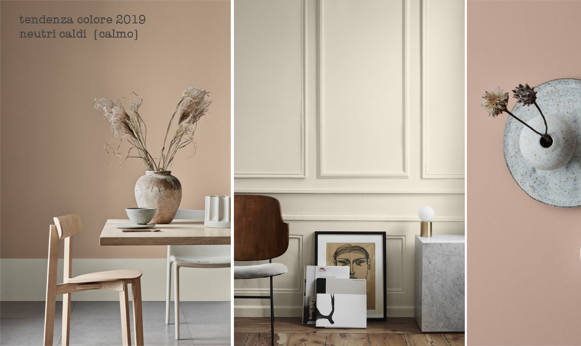 • Calma, una palette contraddistinta da sfumature calde, neutre e luminose che vanno dai beige, al greige e alle tinte rosate e della pelle;