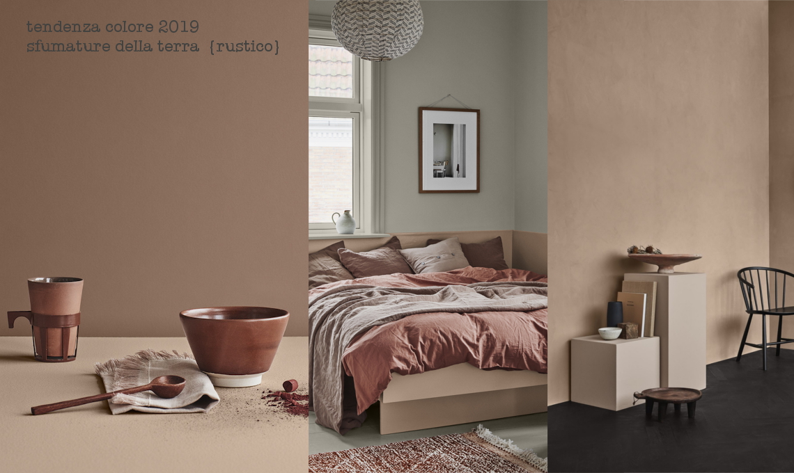 • Rustica, che racchiude un insieme di colori che interpretano un’eleganza “grezza” e rilassata, autentica, grazie ai colori caldi e più decisi della terra, dei marroni e dei beige più marcati.
