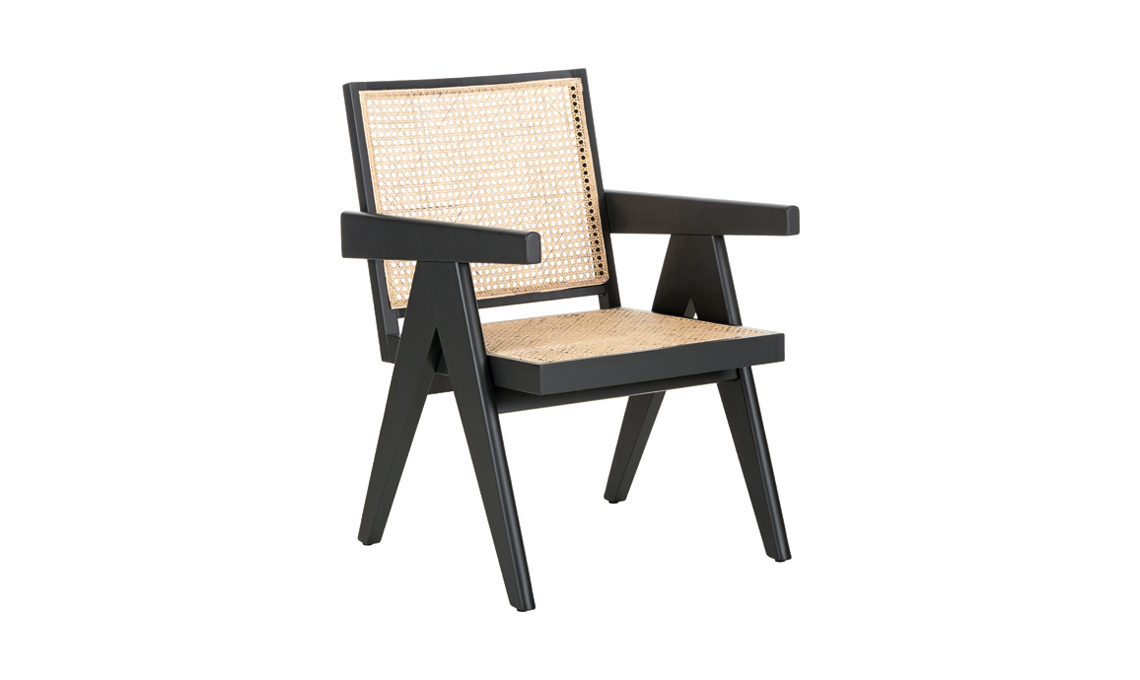Legno massello di faggio verniciato nero e rattan per Sissi, con accogliente schienale alto [Westwingnow]