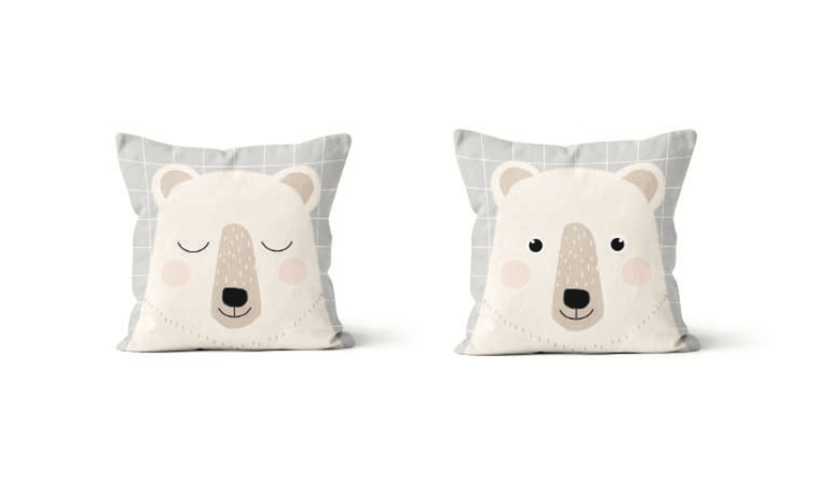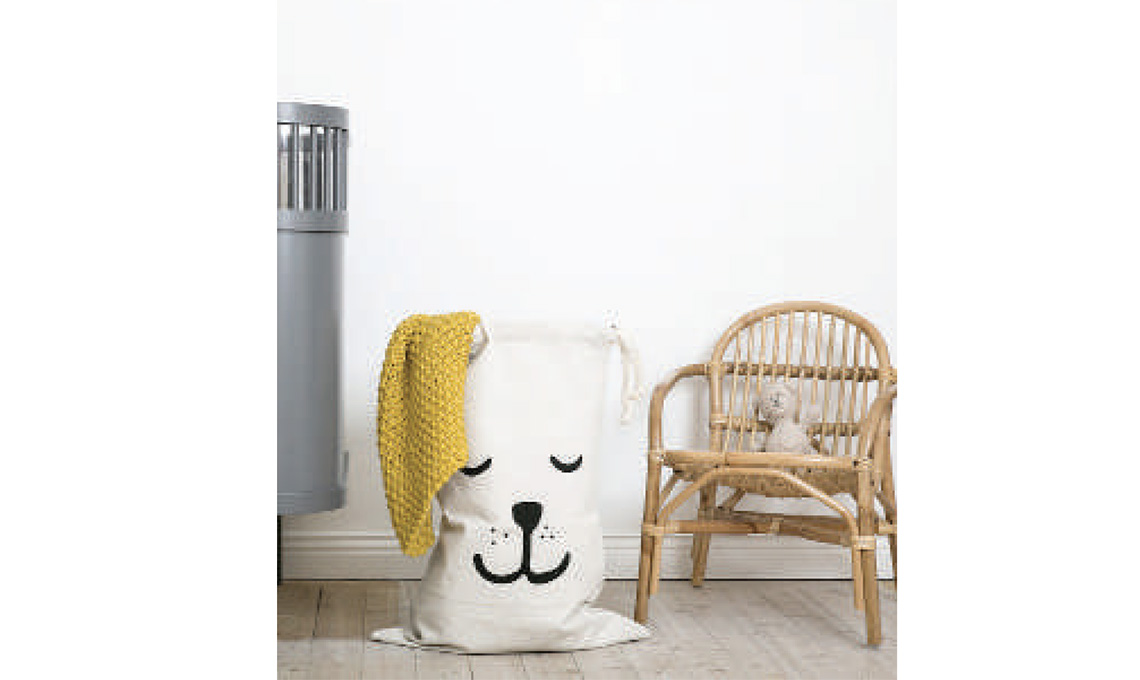 Fabric Bag Bear Sleeping, sacco per giocattoli realizzato in tessuto bianco [Telkiddo €30].