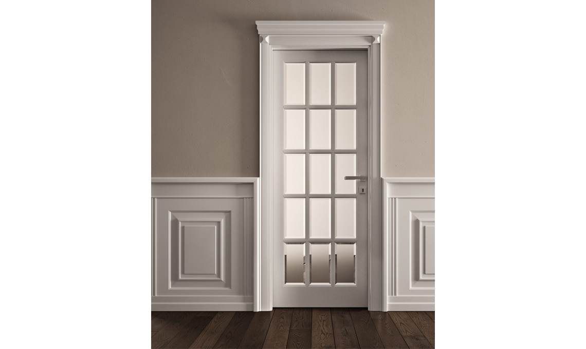 - In stile classico la porta a battente Dorè, in legno laccato e vetro [Garofoli]