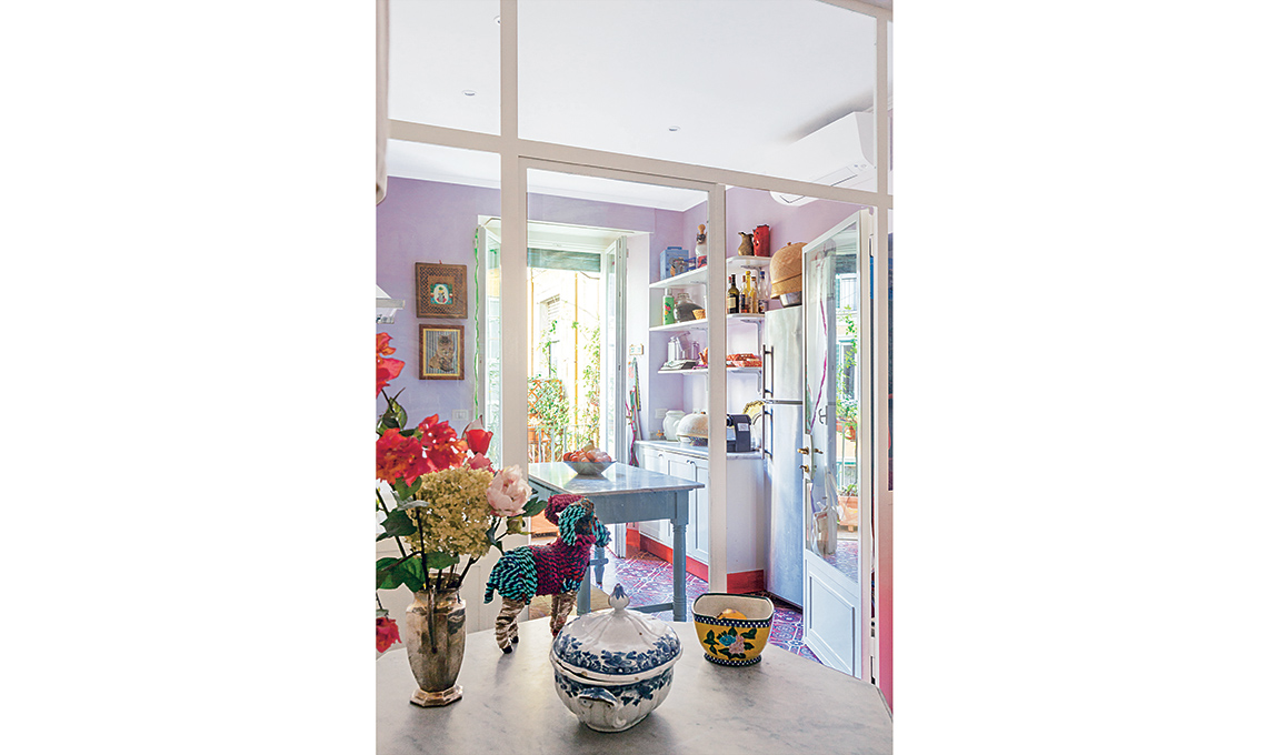 Tutti gli arredi si abbiano naturalmente e i viaggi in Oriente hanno rappresentato un pozzo d’ispirazione da cui Lisa ho colto a piene mani. India ma anche Africa e la sua esperienza di vita in Eritrea. Il colore è il vero protagonistadegli spazi. Il viola e l’arancio della bounganville, il rosso fuoco della pinciana e il lilla della jacaranda.