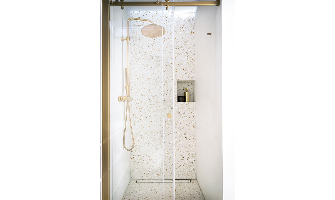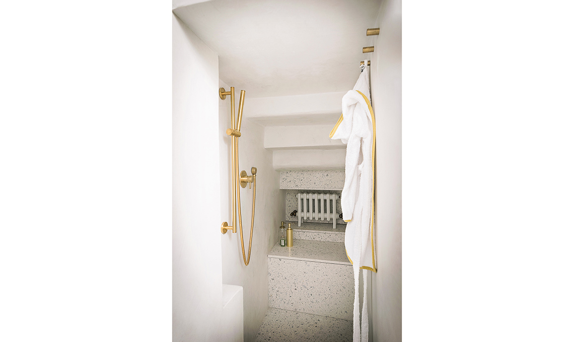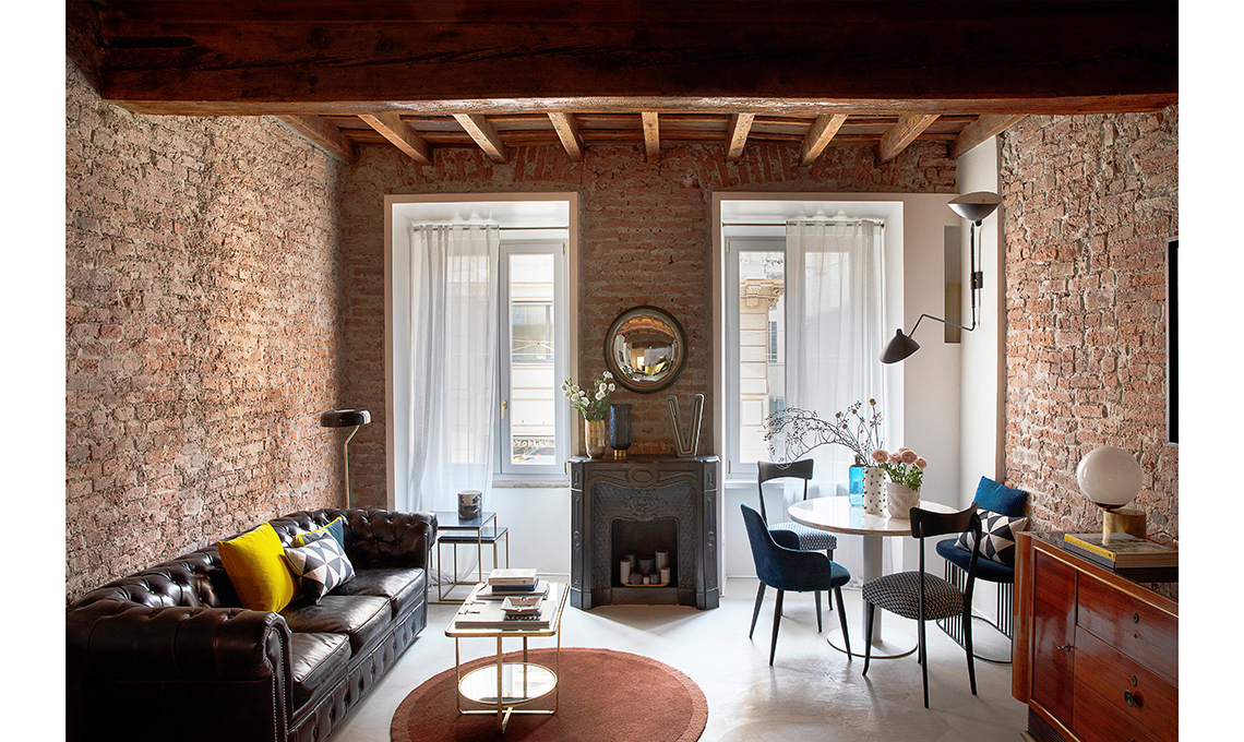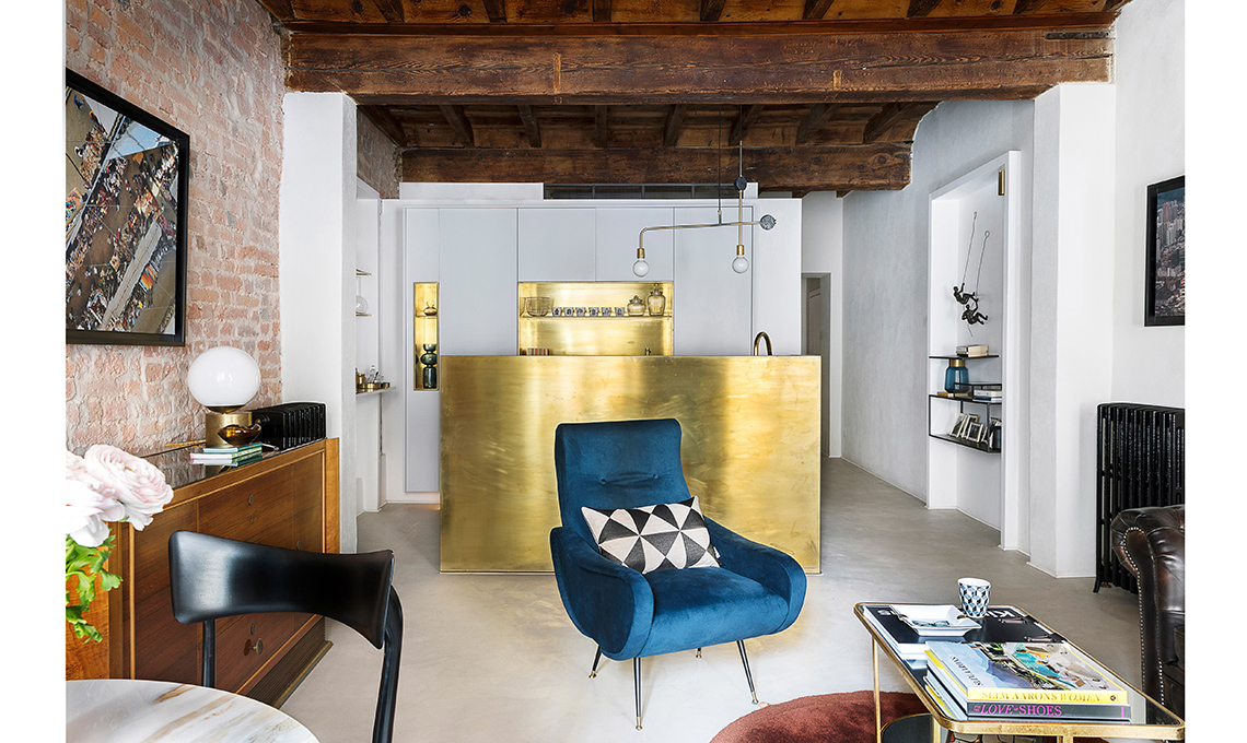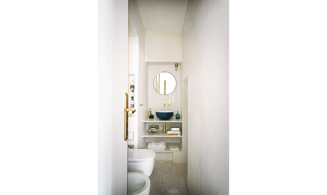 Nell’estetica, la proprietaria ha messo in evidenza il carattere storico dell’immobile portando alla luce i vecchi mattoni, dando lustro alle travi, usando finiture rétro come l’ottone e il terrazzo veneziano. Il décor finale, glam ma per nulla pretenzioso, è opera della nostra stylist Cristina Gigli. Che stile!