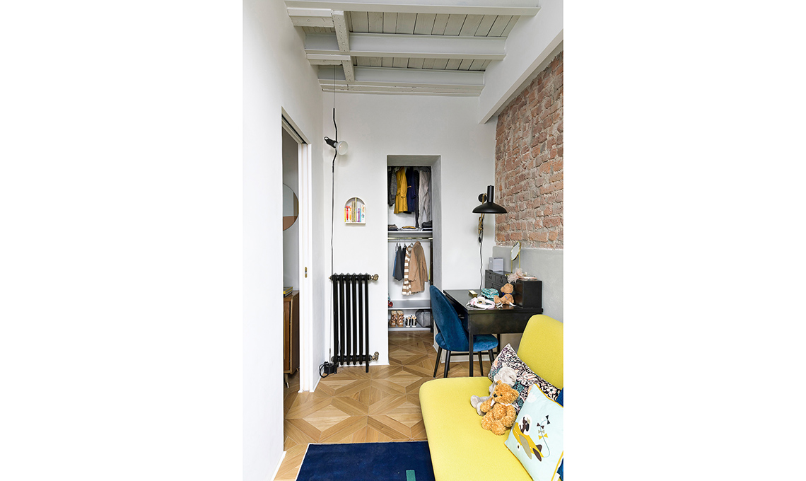 «Nel primo vano, che dall’ingresso arrivava fino alle due finestre ai lati del camino, ho ricavato salotto, cucina, lavanderia e bagno ospiti. Nella seconda stanza, invece, due camere da letto, cabina armadio e bagno: essendoci una sola finestra, la nuova loggia permette di portare luce a quella camera che sarebbe stata cieca» spiega Ilaria
