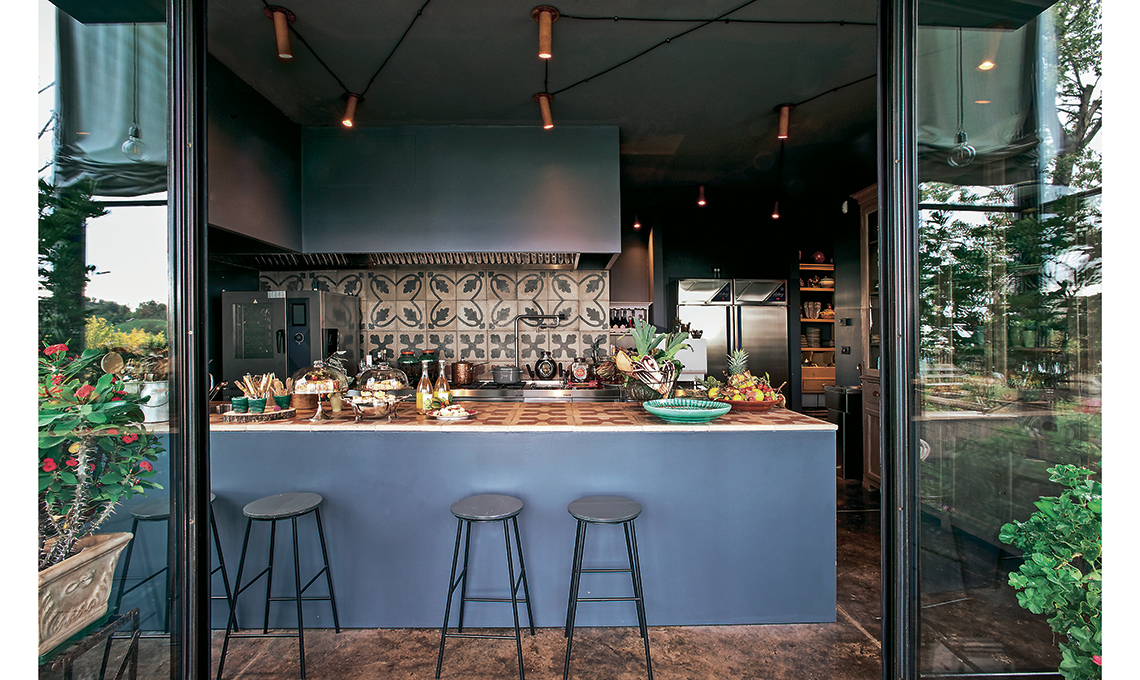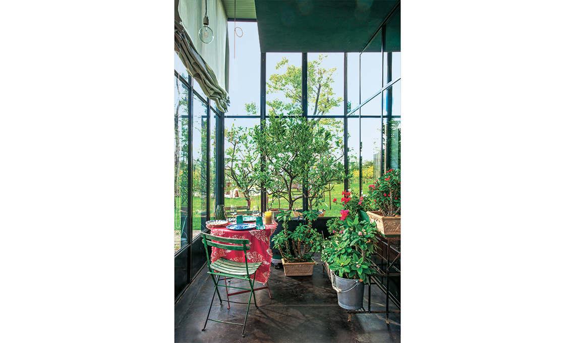 Il progetto è stato affidato all’architetto Silvio Stefani, che non ha modificato la struttura degli ambienti. Una sola aggiunta, di grande effetto: la limonaia in ferro e vetro. «Un desiderio di mia madre finalmente realizzato!» racconta Roberta. Lo spazio cucina collegato a questa è molto ampio, nell’ottica della prossima apertura di un piccolo hotel di charme con ristorante!