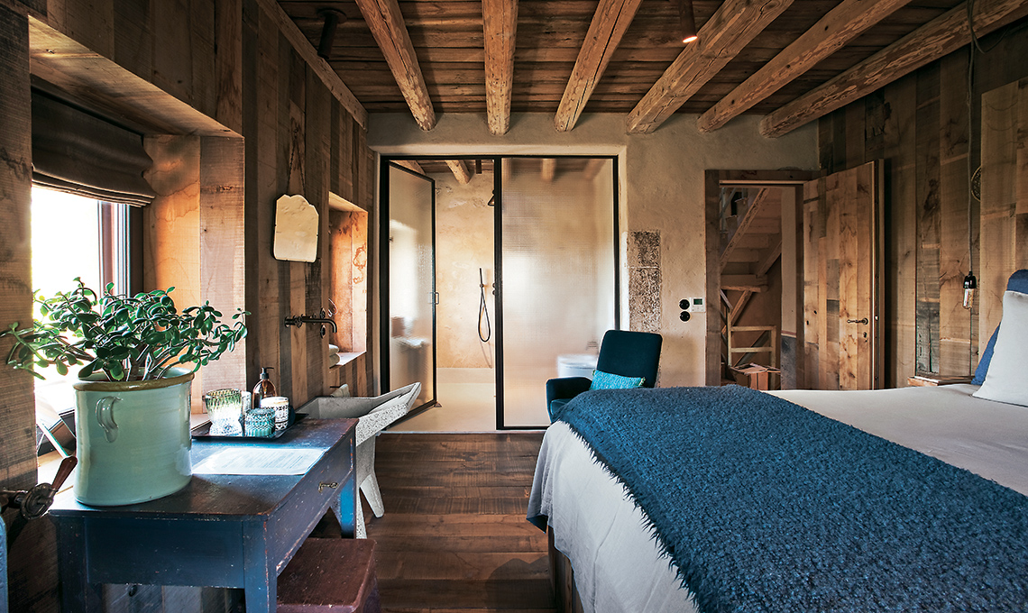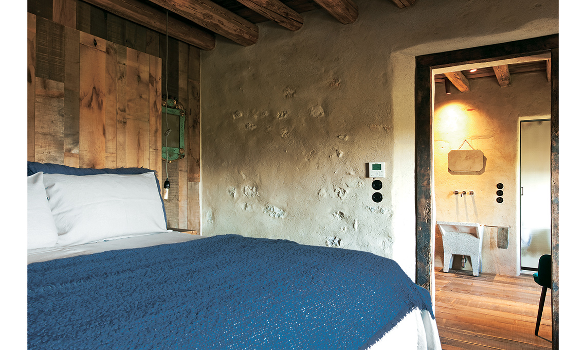 Divise tra primo e secondo piano ci sono sei camere con bagno en suite, destinate a b&b per sei mesi all’anno. «Abbiamo voluto mantenere lo stile e le finiture del pianterreno puntando ancora di più sul comfort» ci spiega Roberta.