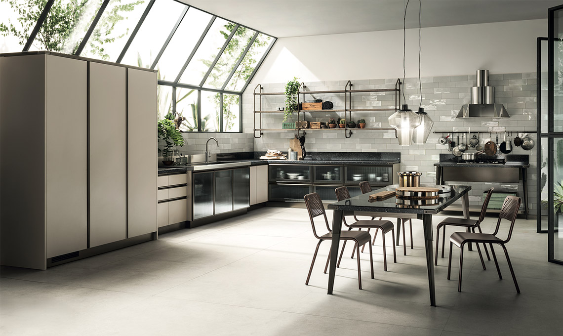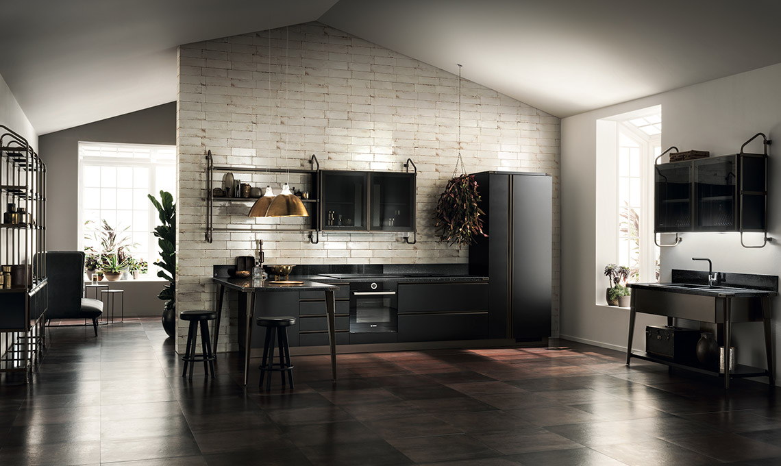 Industrial, ma con calore. Scavolini e Diesel tornano a collaborare e il frutto di questo sodalizio è una proposta per cucina e bagno che unisce il design al mood informale in un impeccabile equilibrio.