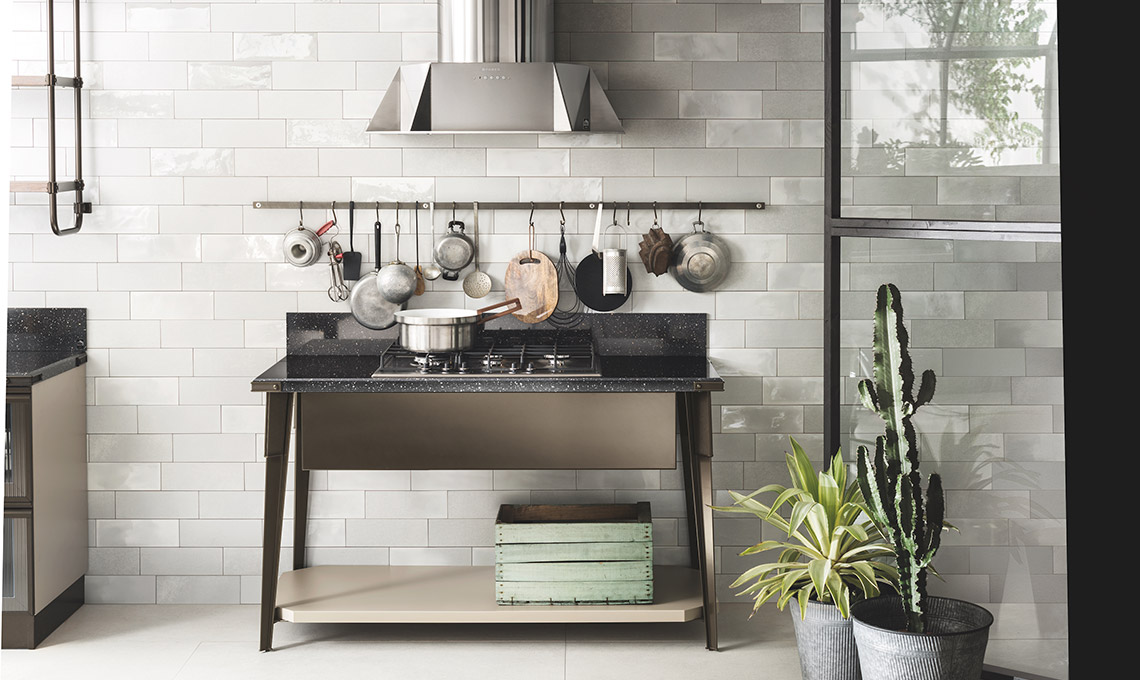 Di ispirazione industriale ma caldo e accogliente: è lo stile della cucina e del bagno Diesel Open Workshop, frutto della collaborazione tra Scavolini e Diesel per esaltare il lato cosy del design.