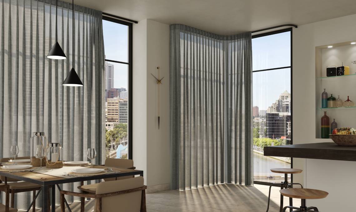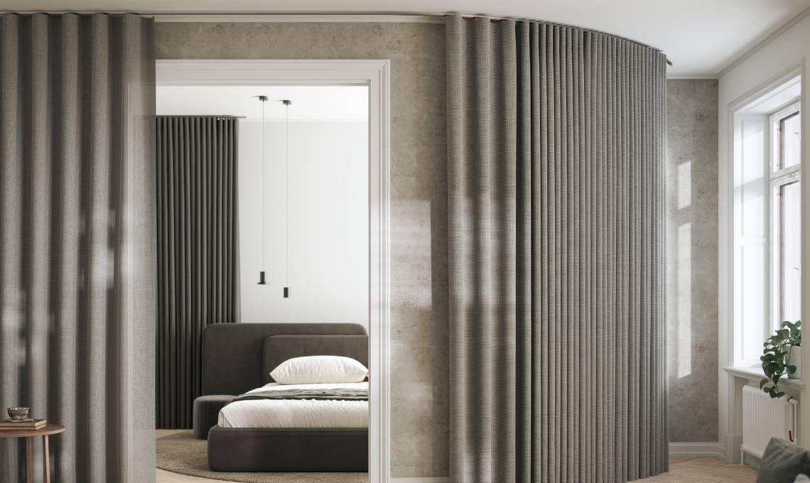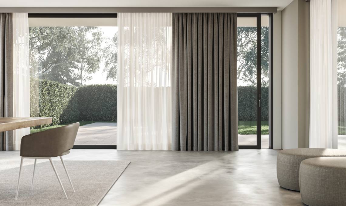 Sempre più persone utilizzano le tende non solo per schermare le finestre ma anche per creare ambienti apri-e-chiudi funzionali ed esteticamente gradevoli. In questi casi sono molto comodi i sistemi motorizzati che possono essere controllati tramite smartphone con bluetooth con l’app EasyMoT, garantendo così il massimo comfort senza l’utilizzo di ulteriori telecomandi. Si possono creare aperture laterali, centrali simmetriche o asimmetriche, e curve a 90° con un raggio di 30 cm. Un vero e proprio 'sipario' per vivere al meglio la propria casa.