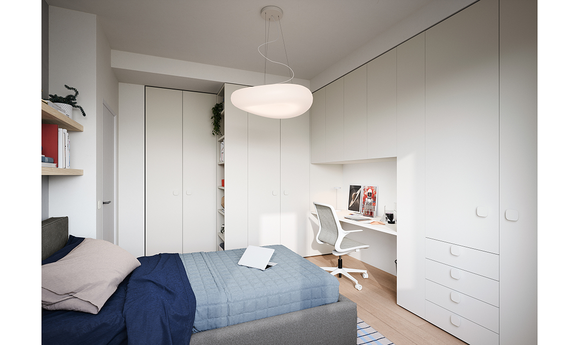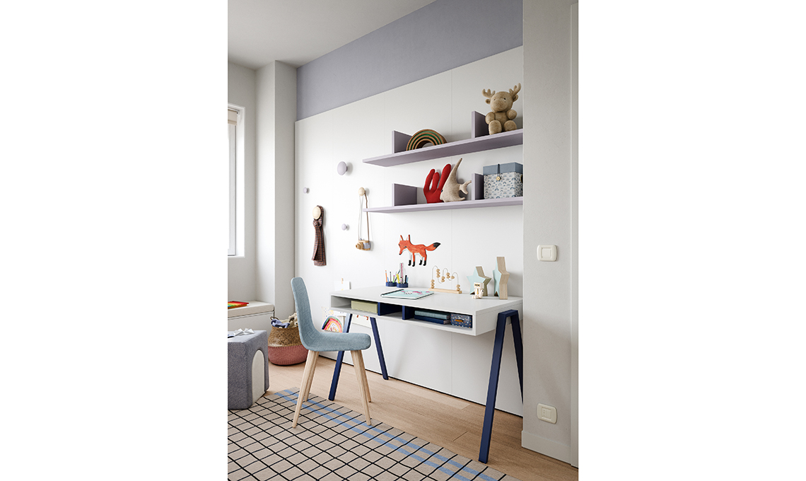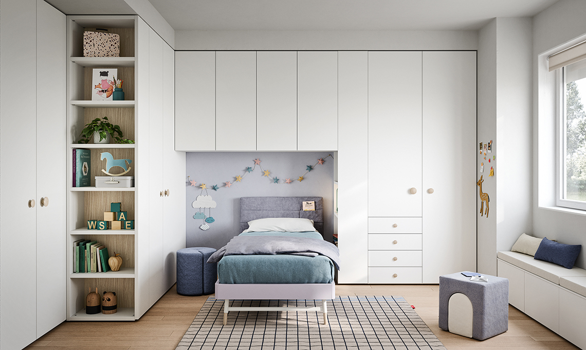 Nelle camere Nidi trovi accessori integrati come ricariche wireless, lampade snodabili, prese usb, luci led e faretti con sensore per l’interno degli armadi e delle cabine ma anche per i ripiani sopra la scrivania, supporti per tv e schermi: progettare la propria camera diventa un gioco appassionante.