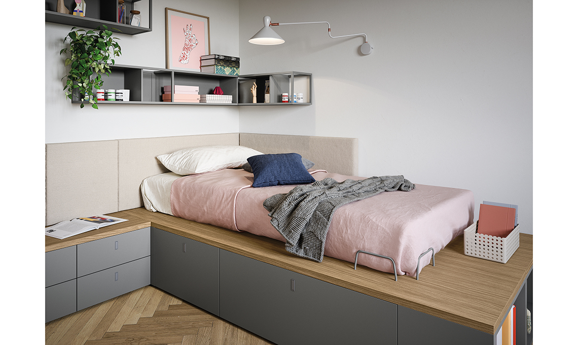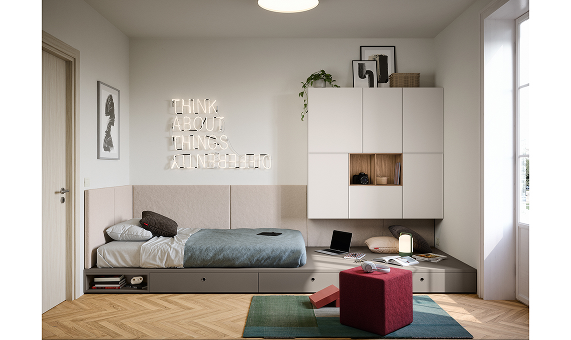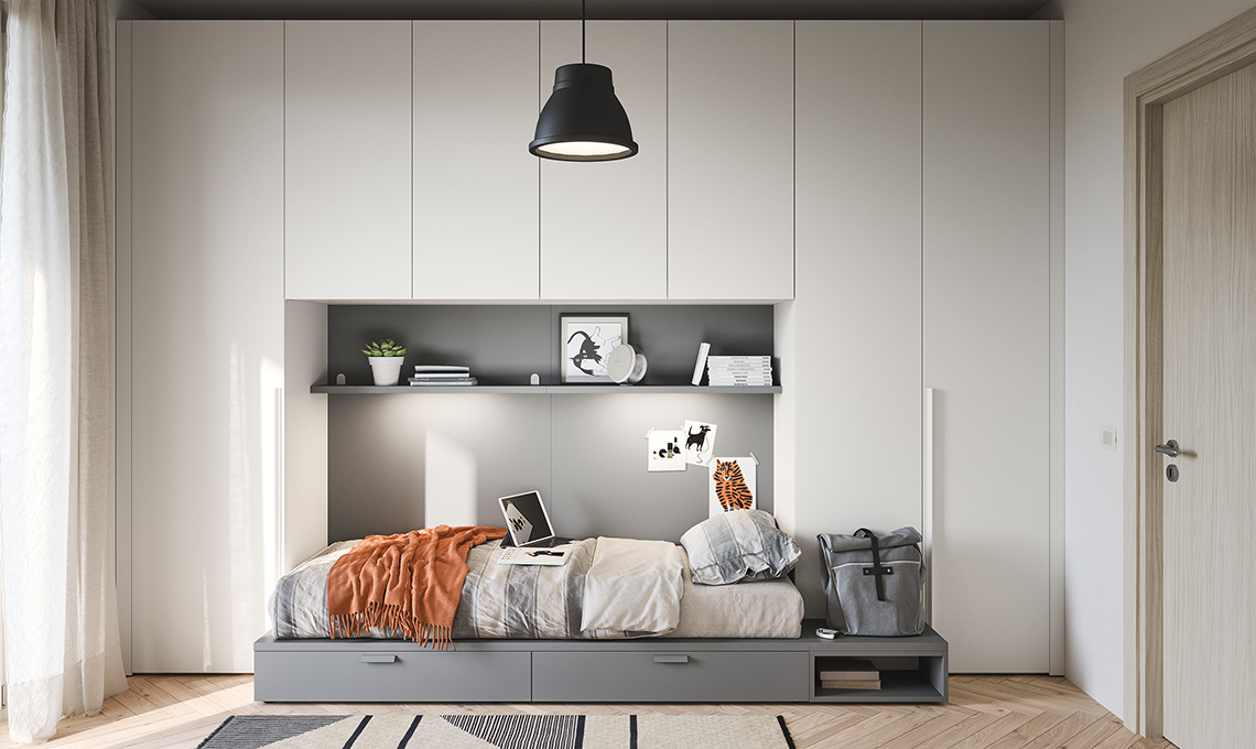 I gusti dei teenager cambiano velocemente: ecco perché gli arredi della loro camera devono essere una tela neutra tutta da personalizzare, senza vincoli dettati da colori chiassosi. Nidi risponde perfettamente a questa esigenza, proponendo soluzioni dal design essenziale, ma ricche di dettagli funzionali che sfruttano ogni centimetro a disposizione.