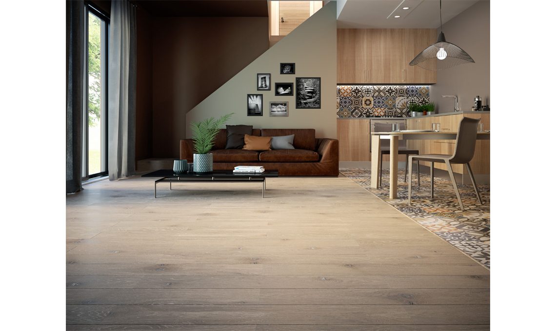 Leroy Merlin ti offre la possibilità di farlo con stile e semplicità puntando sull'uso di materiali diversi. Se vuoi uno stile caldo e accogliente, ma anche mediterraneo, puoi giocare sul contrasto materico e scenografico tra legno e grès porcellanato. Puoi scegliere il Parquet Rovere Rustic Miele chiaro e con le venature fluide ben visibili e mixarlo con le Piastrelle Art Deco per delimitare la zona cucina. Il risultato è uno spazio definito, accogliente e caldo, perfetto per una casa moderna.