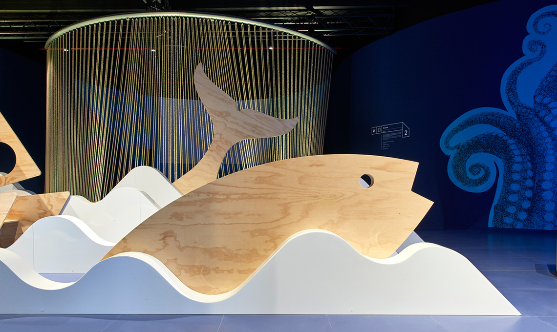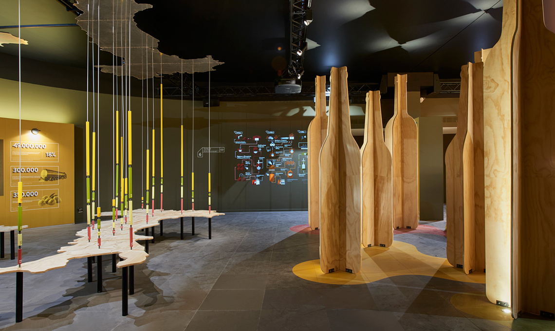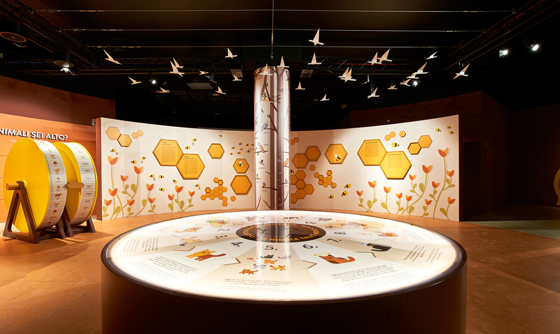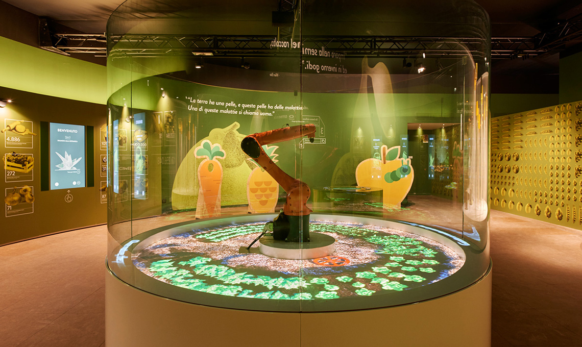 L'allestimento, curato dallo studio milanese Limiteazero e Clonwerk, invita il pubblico a un'esperienza multimediale attraverso cinque mondi diversi in relazione all'uomo: fuoco, terra, animali, mare e produzione di olio, vino e birra, i temi che compongono la biodiversità alimentare italiana.