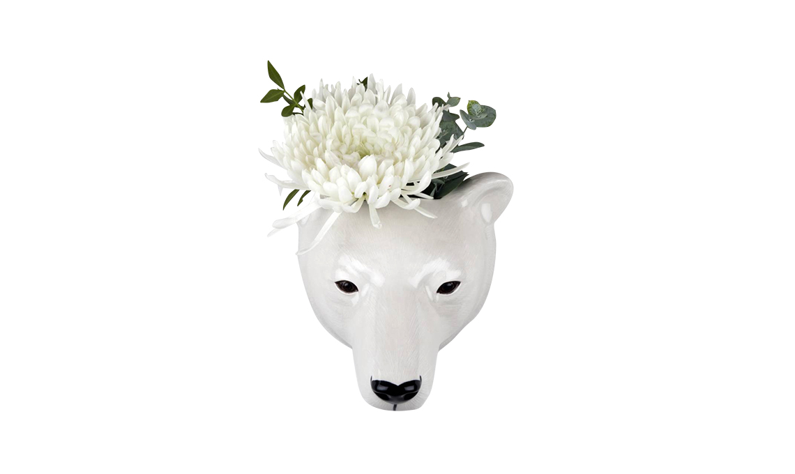 Vaso-orso polare da parete, in ceramica dipinta a mano. Per fiori o oggetti di Quail Ceramics.