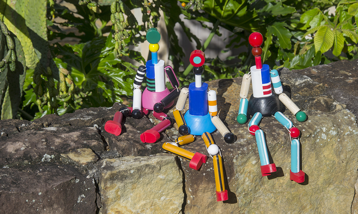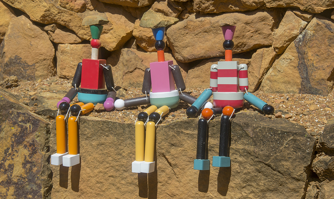A metà strada tra giocattoli e sculture, le figure stilizzate con sembianze umane o animali, sono create pensando ai bambini ma piacciono anche ai grandi, diventando vere decorazioni per la casa.