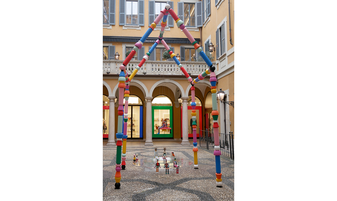 I colori e i pattern caratteristici di Marni su giocattoli-sculture in vendita a Natale per raccogliere fondi da dare in beneficenza