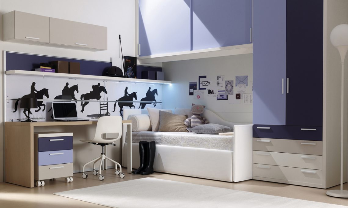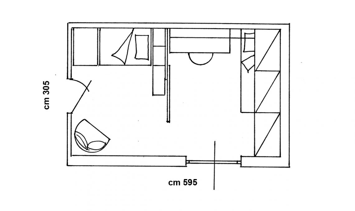 Silvia ha appena scoperto di aspettare una bimba: lei e il marito hanno già Niccolò di 11 anni e la camera che hanno a disposizione per loro è una sola. Ci scrive per trovare una soluzione che lasci a ciascuno il proprio spazio. Dato che la stanza ha una sola finestra non si possono eseguire lavori in muratura e occorre un modo alternativo e 'flessibile' che segua entrambi i figli nella crescita. Ecco la nostra proposta: una libreria completata dalla doppia anta scorrevole in vetro satinato (divide, ma lascia passare la luce) viene installata a metà della stanza e servirà da divisorio. Per lui una stanza ‘da grande’ con armadio a ponte, letto e scrivania; per lei il lettino che, con poche mosse, si potrà trasformare in un letto singolo più una scrivania quando Alessandra comincerà ad andare a scuola.